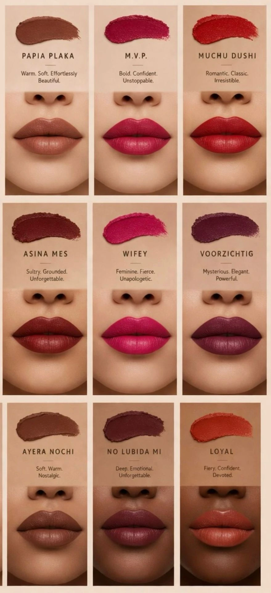 "Muchu Dushi" meaning too good is the perfect kiss of red. Classic, romantic and dangerously irresistible.